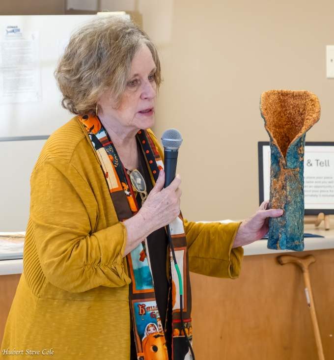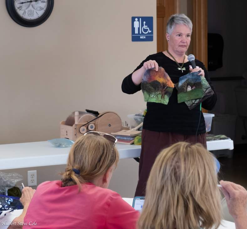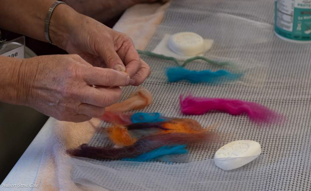 Pamm brought samples of needles and felted pieces along with samples of her art and the process she used to create.