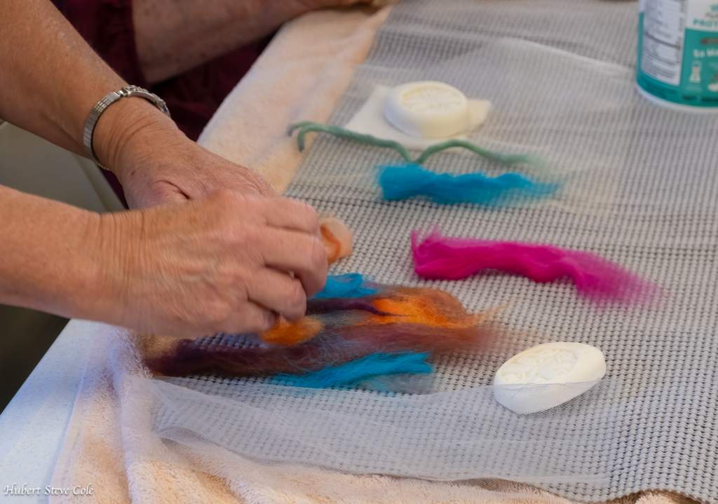 Gerlyn Brasic presented her art and "how to" on wet wool felting, followed by an opportunity to make a wool coaster.