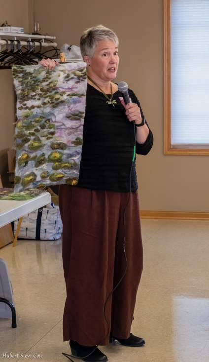 Pamm brought samples of needles and felted pieces along with samples of her art and the process she used to create.