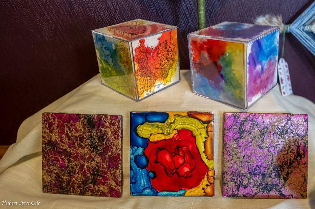 May & June 2025 Sarah Williams, Acrylics, Pen & Ink, Linocut, Watercolor Pencil, Fused Glass, Jewelry Andrea Schaffer, Mixed Media, Pastels, Clay