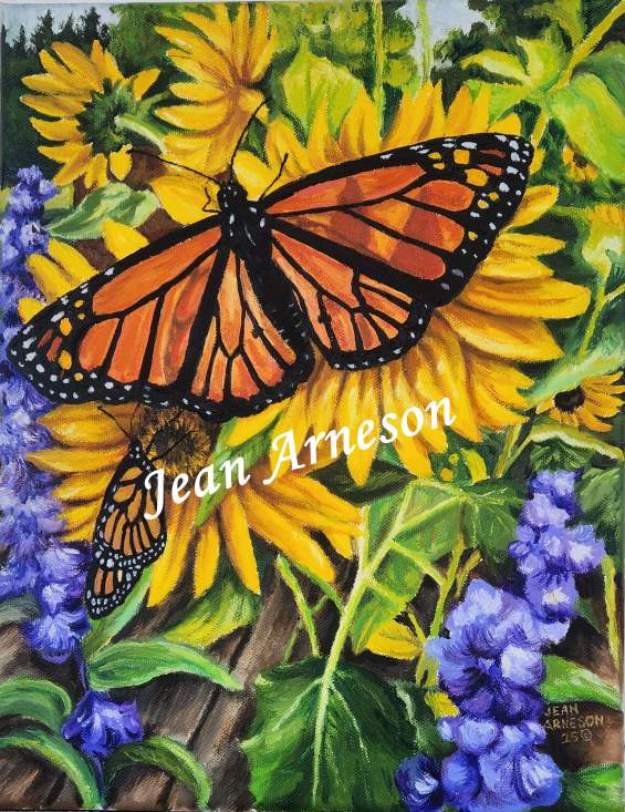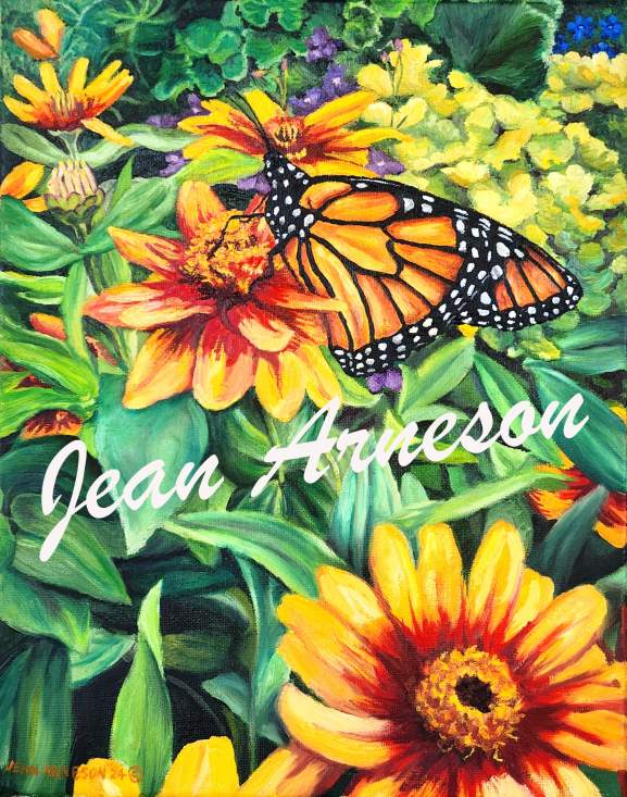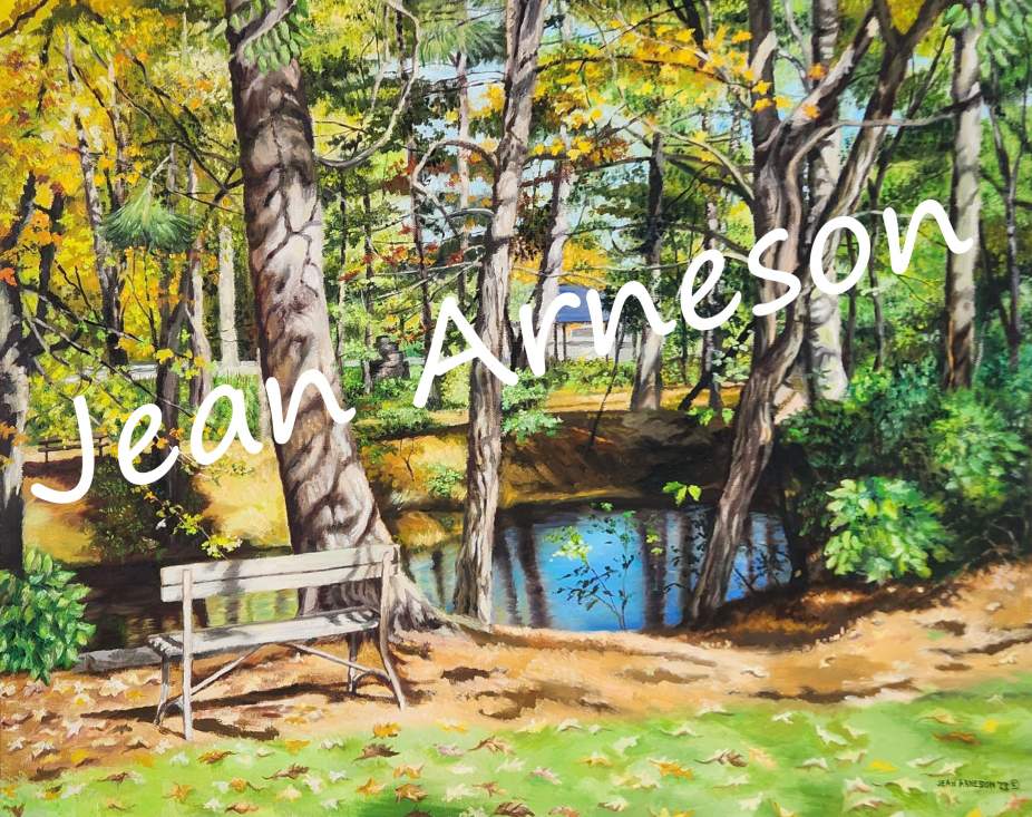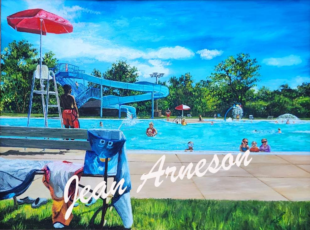 Jean Arneson is a free lance artist who studied fine art under professional artist Hugh Mandelert. She is the designer for Northwoods Rubber Stamps in Cleveland Ohio, click on website 2 above. Her artwork can be seen throughout Chippewa Falls, WI, the Historical Wagner St. wall mural, the Tiger Exhibit wall mural in Irvine Park and the scenic displays in Irvine Park Christmas Village. Public art collections are on display in Chippewa Falls at the public library; The Lumberjacks, Northwestern State Bank; Irvine Park Revisited, a series of eight oil paintings plus the Irvine Park Band Shell, and the Irvine Park Path, the Heyde Center for the Arts; Chippewa Sawmill, Citizens State Bank in Cadott; The Cadott Dam and the Village of Cadott; Yellow River Dam in Cadott and Riverview Park Halfway Sign.